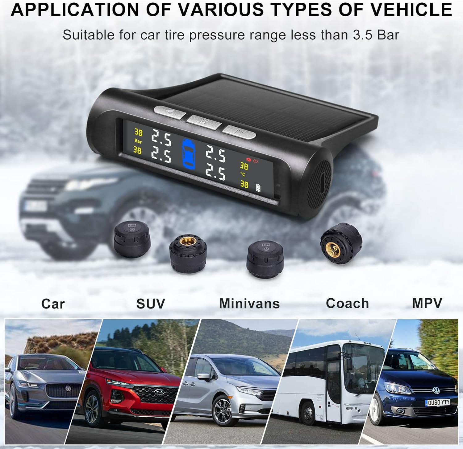 - 🚘Solar Powered Charging and USB Powered Charging:Our tpms tire pressure monitor system are powered by solar energy, but they can also be charged by USB when the sun is not shining. Please note that during the first installation, you need to turn on the display first, then insert the sensor. After driving for 5-10 minutes, all data will be displayed. The sensor must be activated through movement.